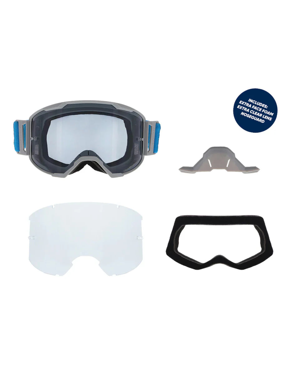 El siguiente paso en lentes de alto rendimiento para gafas MX. Las lentes dobles están conectadas directamente entre sí y, por lo tanto, ofrecen una vista panorámica única al prescindir de la espuma utilizada normalmente. Sin reflejos, distorsiones ni refracciones de la luz. Combinado con un diseño de montura delgada, el Strive le brinda un campo de visión un 15% más amplio. Además, la delgada lente interna evita que las lentes se empañen durante más de 180 segundos, superando con creces el estándar requerido de 30 segundos.